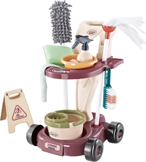 Zábavný a vzdělávací dětský úklidový set s vozíkem obsahuje až 26 dílů, včetně mopu, vědra, vysavače a kartáčů. Realistické doplňky motivují děti k napodobování dospělých a učí je zodpovědnosti, pořádku a jemné motorice. Kvalitní zpracování a možnost ukládat vše na vozík zajišťují přehlednou a bezpečnou hru.