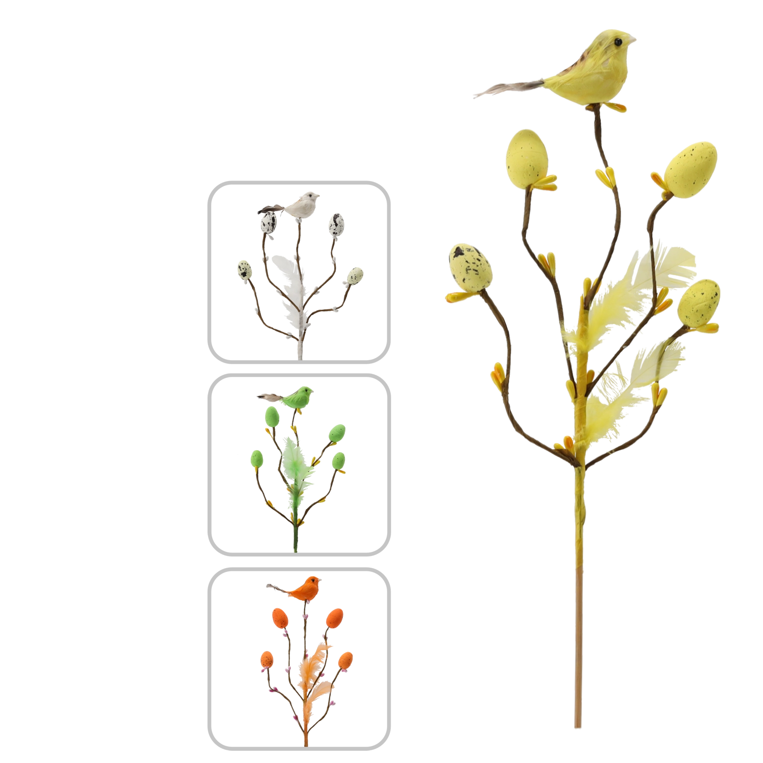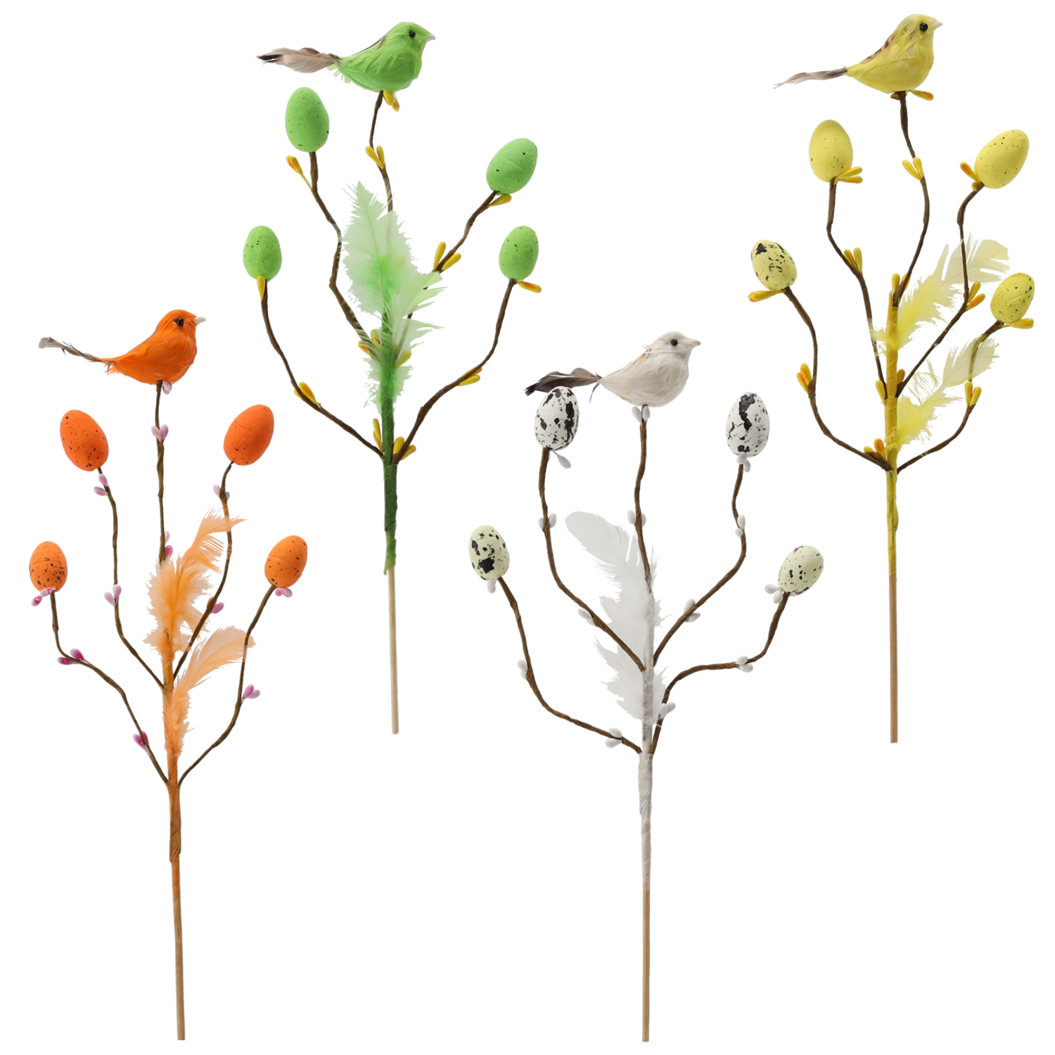 Vyberte si z mixu čtyř barev (zelená, bílá, oranžová, žlutá) a dodejte svým velikonočním ozdobám harmonii. Dekorace je lehká, opakovaně použitelná a ideální pro rychlé a efektní dotvoření sezónních výzdob.