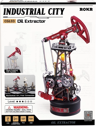 Vstupte do světa průmyslové éry s detailní 3D skládačkou ropného čerpadla, která nabízí realistický kývavý pohyb ramene, funkční převody s pístovým mechanismem a efektní LED osvětlení. Model v industriálním stylu je napájen přes USB, má 127 dílků a střední obtížnost, takže je skvělý jako dekorace, dárek i sběratelský kousek pro děti od 14 let i dospělé.