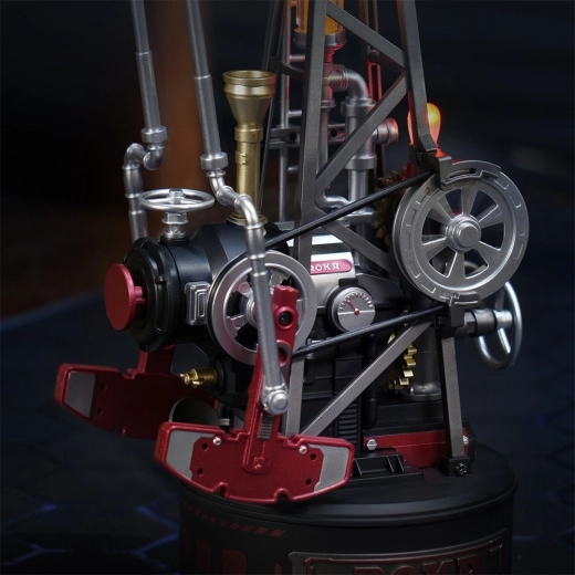 Integrované LED diody vytvářejí působivý efekt simulace spalování v „kotli“, který podtrhuje steampunkový industriální vzhled modelu.