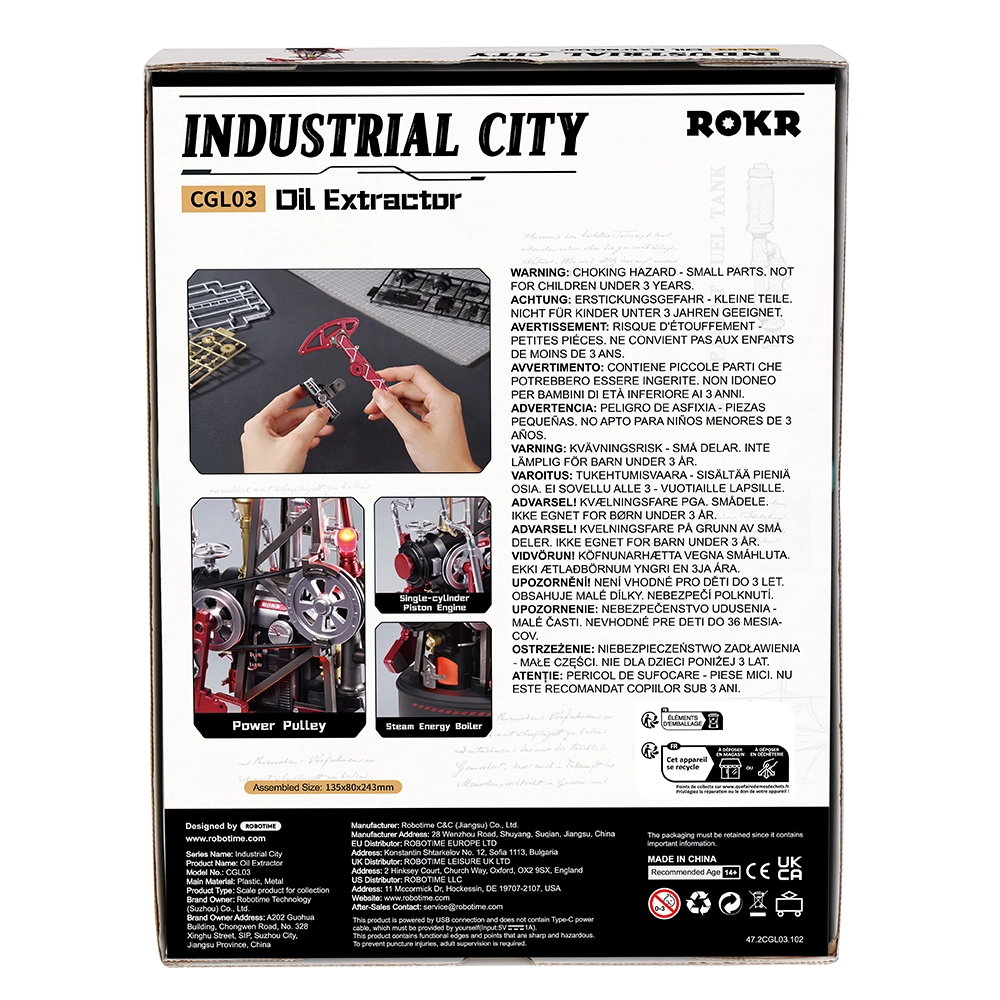 Model je součástí série Industrial City a po sestavení se stane poutavou pohyblivou dekorací i učební pomůckou mechaniky. Díky střední obtížnosti zaujme jak začátečníky, tak pokročilé stavitele. Napájení přes USB zajistí stabilní provoz bez starostí o baterie.