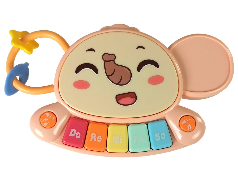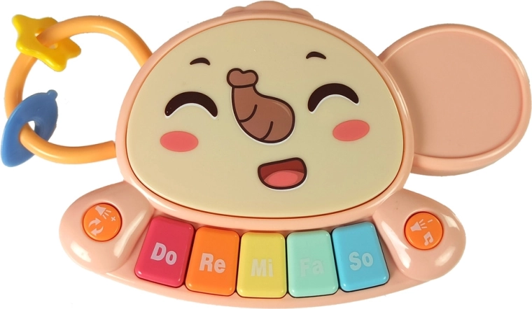 - barevné piano (Do–Re–Mi–Fa–So), 3 ozubená kolečka, geometrické tvary na šňůrkách, košík a míčky, otočné kostky