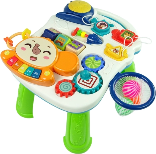 Edukační panel rozvíjí jemnou motoriku, koordinaci oko–ruka i vnímání barev a tvarů. Děti si užijí hudební aktivity, skládání tvarů i první pokusy o házení do koše. Všechny prvky jsou navrženy tak, aby motivovaly k objevování a podpořily přirozený vývoj dítěte.