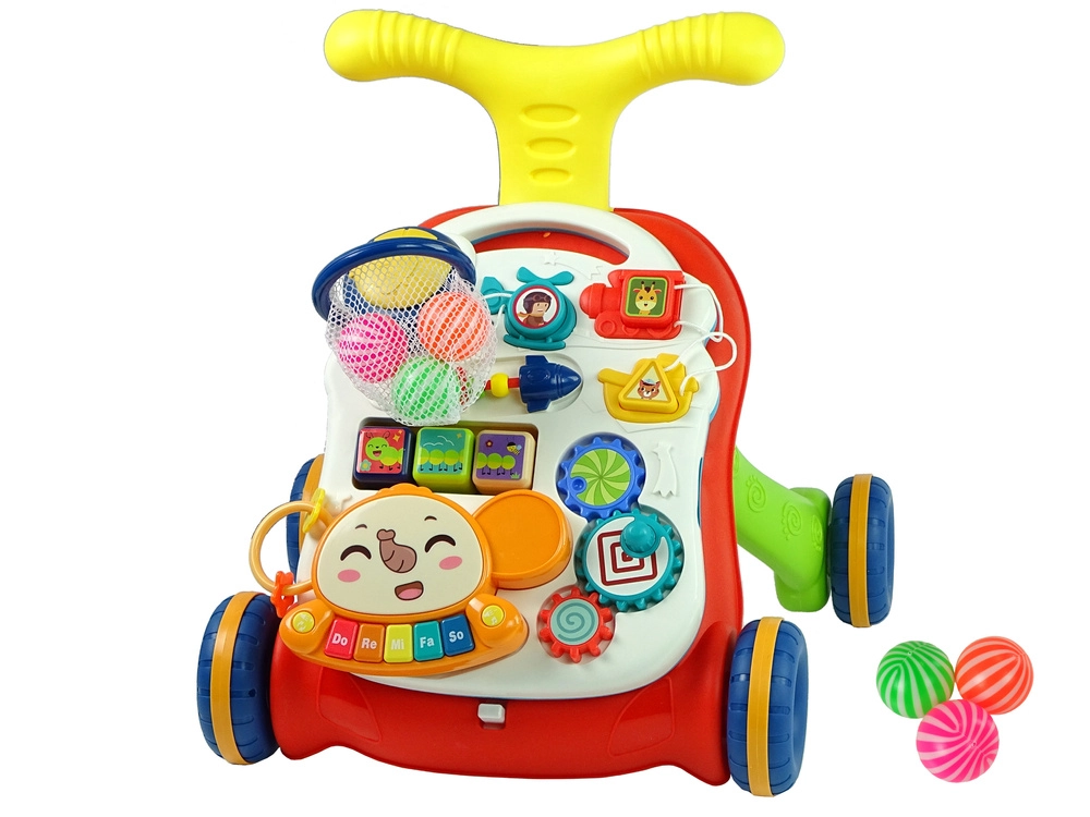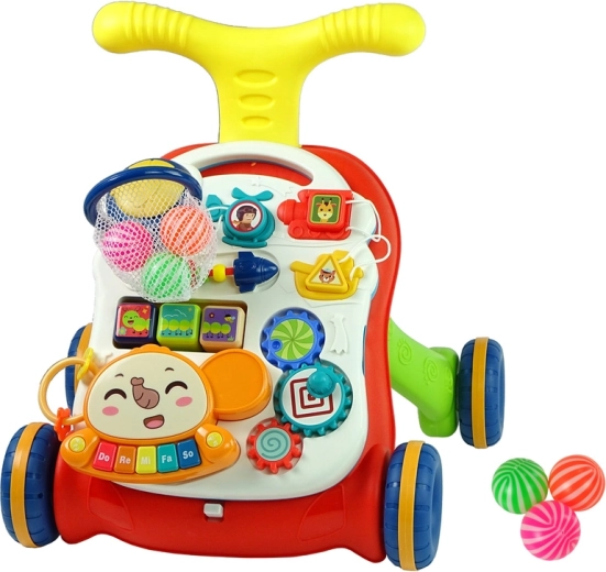 Interaktivní chodítko 2v1 kombinuje oporu při chůzi a zábavný vzdělávací stoleček. Díky robustnímu provedení, blokaci zadních kol a možnosti naplnění nádržky vodou je pohyb dítěte bezpečnější a jistější. Odnímatelný panel lze používat samostatně v postýlce nebo na cestách, takže zábava pokračuje kdykoli a kdekoli.