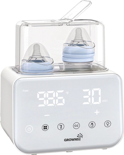 Dvojitá komora šetří čas – ohřejte dvě láhve, sáčky s mateřským mlékem nebo skleničky naráz a bez zbytečného čekání. Režimy rychlého ohřevu párou (cca 5 min) i jemné vodní lázně zajišťují šetrnou přípravu mléka, vody i příkrmů.