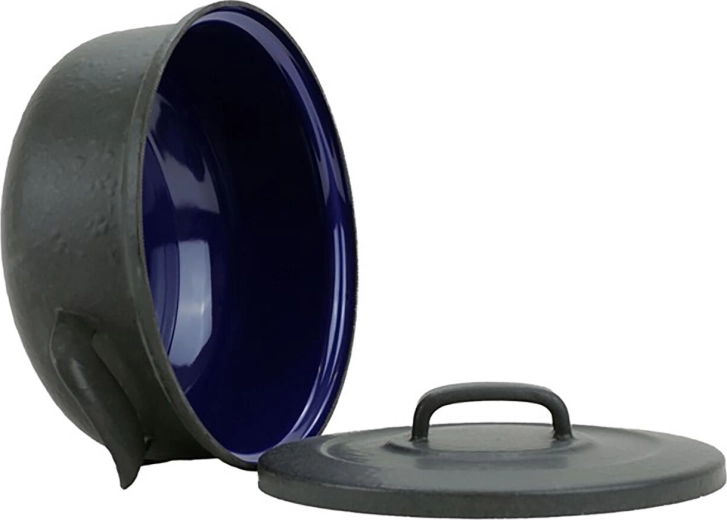 Silný plech 2 mm, kvalitní smalt a klasická poklice zajišťují rovnoměrný ohřev, dlouhou životnost a spolehlivý výkon při vaření i dušení.