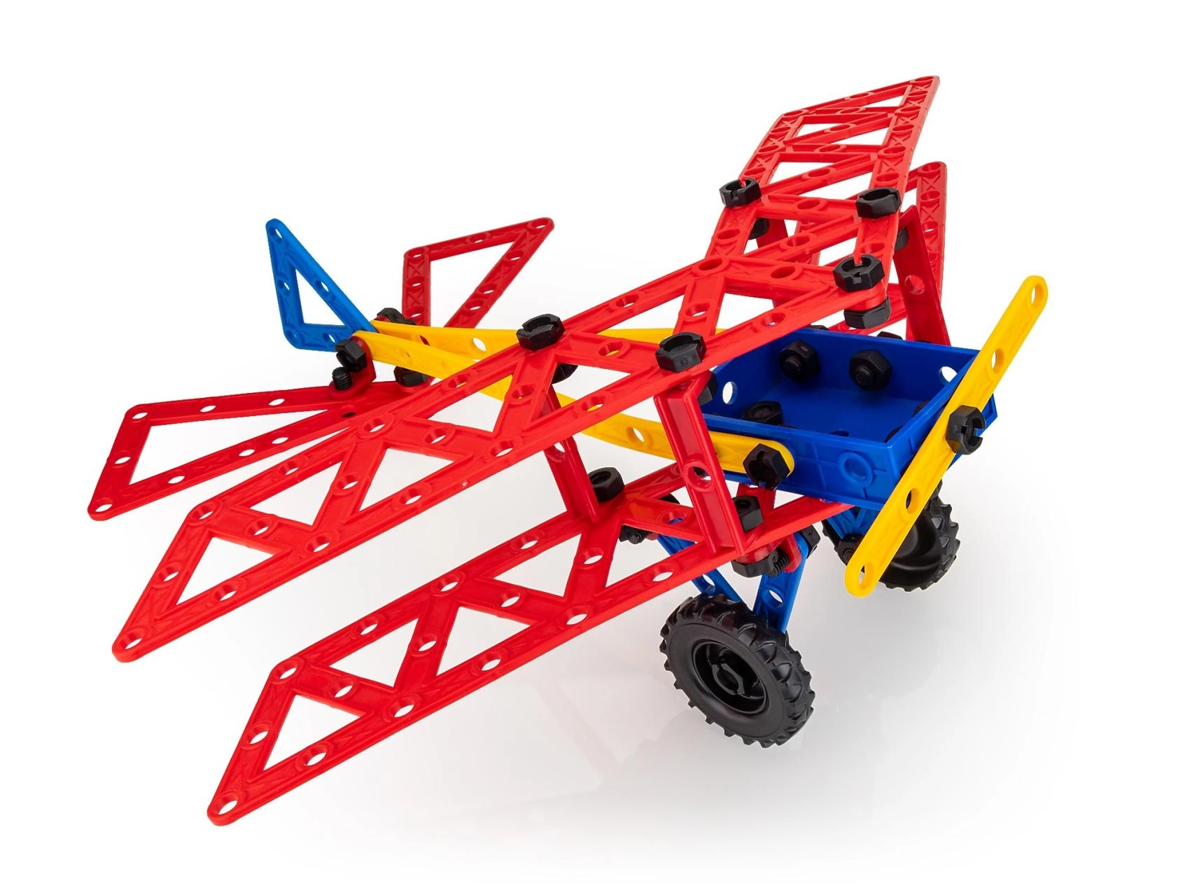 Díky variabilním dílům lze vytvářet nejrůznější konstrukce – od biplánu přes vozidla až po lodě. Velké perforované panely, spojky a nosníky se snadno kombinují, takže je stavebnice skvělá jak pro začátečníky, tak pro malé konstruktéry, kteří chtějí zkoumat principy mechaniky a základní fyzikální jevy.