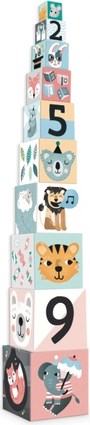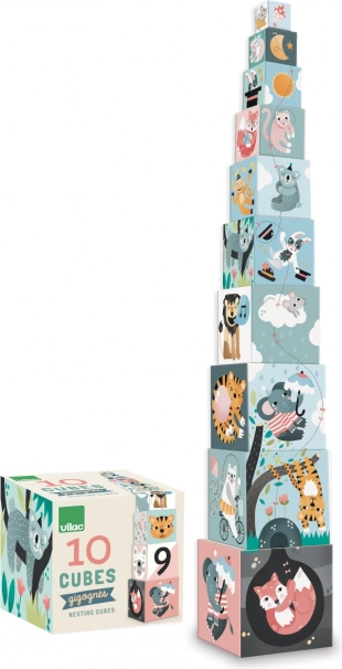 Představujeme skládačku, která kombinuje zábavu a učení do jedné barevné sady. Tato sada obsahuje deset kartonových kostek zdobených nádhernými ilustracemi zvířat a čísel, vytvořených Michelle Carlslund.