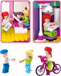 Tato barevná stavebnice přináší moderní salon krásy s výlohami, zrcadly a posezením, kde si děti mohou přehrávat příběhy vizážistů i zákaznic. Díky 3 figurkám a bohatým detailům vznikají stále nové scénky – od úpravy účesů až po projížďku na růžovém kole.