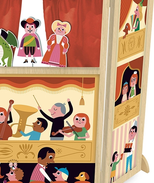 Velkolepé trojstěnné dřevěné divadlo s oknem a oponou nadchne malé vypravěče. Obsahuje 3 loutky, je ilustrované umělkyní Ingelou P. Arrhenius a rozvíjí představivost i komunikační dovednosti. Vhodné od 3 let, rozměry 115 × 110 × 5 cm.