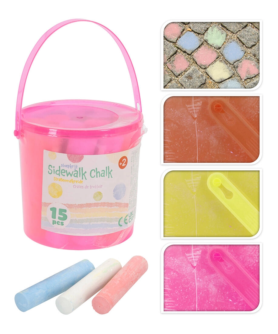 Barevné chodníkové křídy v praktickém plastovém kbelíku rozvíjejí dětskou kreativitu a promění každý chodník v malířské plátno. Sada obsahuje 15 kusů pestrých kříd, které se dobře drží, snadno kreslí a jdou jednoduše smýt vodou. Ideální pro venkovní zábavu, školky, hřiště i domácí dvorek.