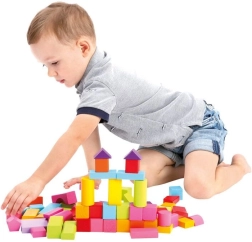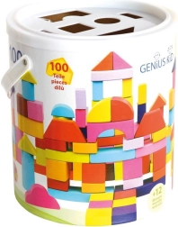 V kyblíku najdete 100 barevných kostek různých tvarů, které děti zabaví na dlouhé hodiny. Víko kyblíku slouží jako vkládací hračka, která pomůže vašemu dítěti učit se rozpoznávat různé tvary a zlepšovat jemnou motoriku.