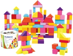 Kyblík obsahuje 100 pestrobarevných kostek, které podnítí dětskou kreativitu.