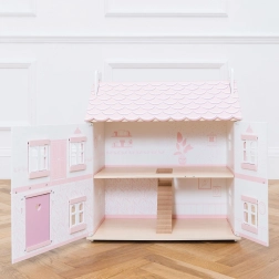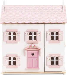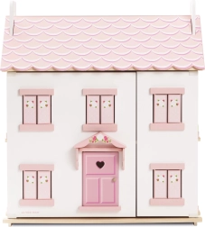 Luxusní třípatrový dům v romantickém růžovo-bílém provedení zaujme třpytivou vroubkovanou střechou, srdíčky a pestrými interiérovými dekoracemi v každém pokoji. Otevírací okna a okenice zvou děti do světa příběhů, zatímco stabilní dřevěná konstrukce zaručuje dlouhou životnost. Domeček je dodáván bez vybavení, takže si jej mohou děti dotvořit nábytkem a figurkami dle svého stylu.