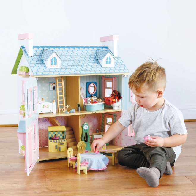Objevte kouzlo hry s domečkem Le Toy Van Mayberry Manor – ručně malovaný třípatrový dům z FSC dřeva s otevíracími okny, okenicemi a dveřmi. Nabízí velkorysý prostor pro kreativní hru, poloodnímatelnou střechu využitelnou jako předzahrádku a propracované detaily, které podporují rozvoj představivosti, koordinace a sociálních dovedností. Určeno pro panenky do 15 cm.