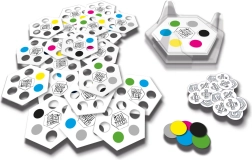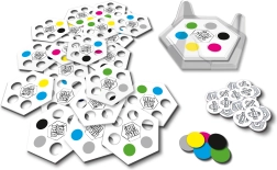46 hracích karet, 12 barevných žetonů, 60 bodovacích žetonů, 1 stojánek na karty, 1 pravidla