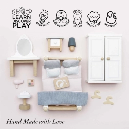 Le Toy Van přináší sadu do ložnice, která přináší eleganci a komfort do každého domečku pro panenky. Hravě zasněný svět dětské fantazie se s touto sadou stává realitou.