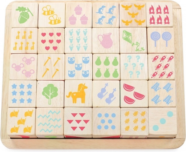 - 30 kostek + dřevěná podložka pro třídění a ukládání
