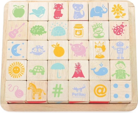 Tato sada LE TOY VAN Petilou je ideální vzdělávací hračka pro děti od 12 měsíců. Každá kostka je jedinečná, ručně potištěná sítotiskem a nabízí na různých stranách písmena, číslice, tvary, zvířátka a symboly. Díky robustnímu kaučukovému dřevu a barvám na vodní bázi jsou kostky odolné, bezpečné a příjemné na dotek.