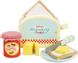 - Kompletní snídaňová sada: topinkovač s pružinou, 2 krajíce chleba, máslo na suchý zip, nůž, talíř a džem.