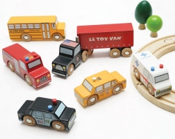 Vozidla jsou vyrobena eticky z FSC certifikovaného dřeva a ručně domalována ekologickými barvami. Díky kompatibilitě s populárními dřevěnými dráhami snadno rozšíříte dětský svět o další prvky a trasy. Sada je navržena tak, aby vydržela každodenní hraní a podporovala kognitivní dovednosti.