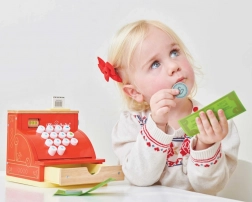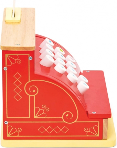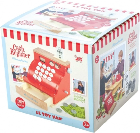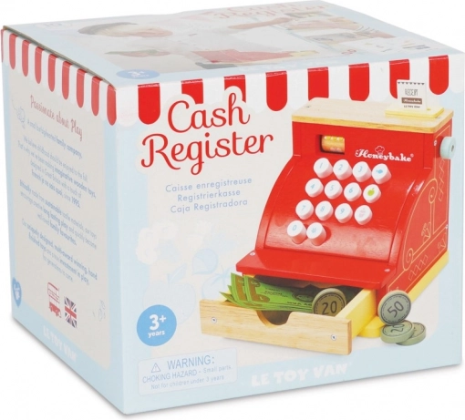 Červená dřevěná pokladna LE TOY VAN z oceňované kolekce Honeybake kombinuje kvalitní zpracování, bezpečné materiály a okouzlující vintage vzhled se zlatými detaily. Je ideální pro hraní na obchod a rozvoj sociálních dovedností, kreativity a základních matematických dovedností.