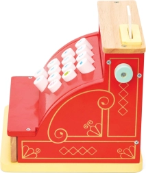 Veselá červená barva se zlatými prvky a velká tlačítka dělají z pokladny atraktivní kousek do každého dětského obchůdku.