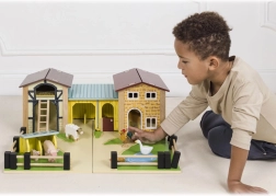 Objevte kouzlo venkova s dřevěnou farmou LE TOY VAN – klasickým herním setem pro malé milovníky zvířat. Nabízí stodolu, stáj, dojírnu, sklad sena a prasečí chlívek na detailně ilustrovaném podstavci s oddělitelným plotem. Vyrobeno z udržitelného dřeva, malováno netoxickými barvami a navrženo tak, aby podporovalo představivou hru a rozvíjelo kognitivní dovednosti.