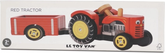 Le Toy Van červený traktor s přívěsem je ideální hračka pro malé farmáře a farmářky. Vyrobený z odolného dřeva a malovaný netoxickými barvami, tento traktor zaručuje hodiny představivé hry.