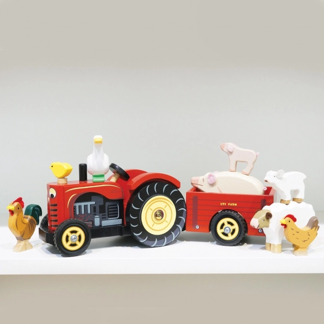 Le Toy Van červený traktor a přívěs