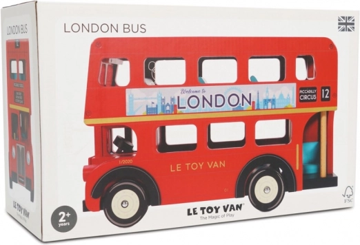 Dřevěný dvoupatrový autobus Le Toy Van London je ideální volbou pro malé objevitele. Vyroben z udržitelného dřeva a malován netoxickými barvami, nabízí mnoho hodin představivých her.