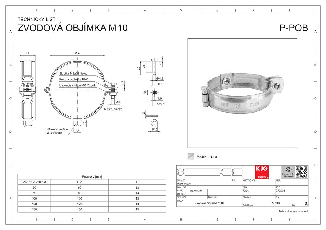 - Materiál/povrch: zinek pro ochranu proti rzi