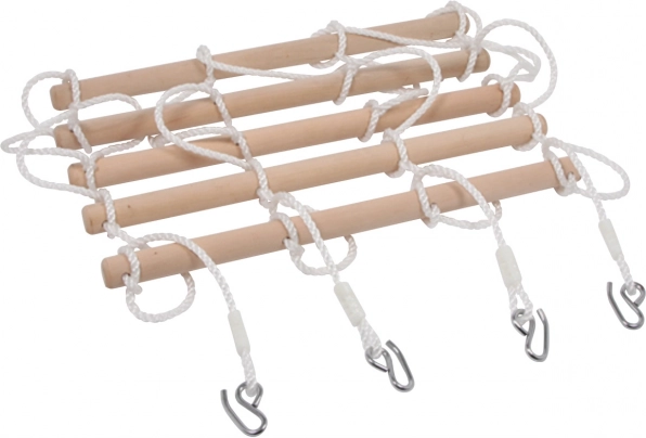 - Robustní provedení: odolné dřevo, pevná lana a kovové prvky