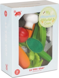 Objevte kouzlo hry na obchod s dřevěnou bedýnkou plnou zeleniny od LE TOY VAN. Pečlivě zpracované kousky jako mrkev, ředkev, žampiony a cuketa podporují představivost, jemnou motoriku a učení o zdravé stravě. Vyrobeno z udržitelného dřeva a malováno netoxickými barvami na vodní bázi – bezpečná volba pro malé ruce.