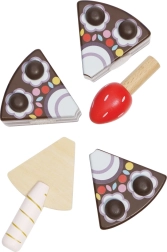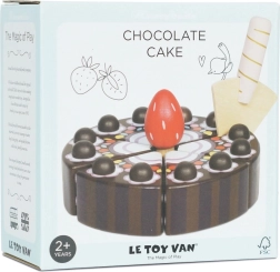 Naservírujte dětem i hostům lahodný dřevěný čokoládový dort od LE TOY VAN. Ručně malované kousky v odstínech hnědé s dekoracemi a jahodou na vrchu se spojují na suchý zip, takže je lze snadno krájet a servírovat. Hračka z udržitelného dřeva s netoxickými barvami podporuje jemnou motoriku, zručnost a představivou hru na role.