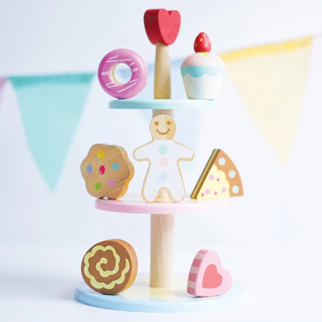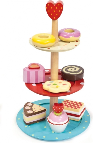 Patrový stánek se zákusky od Le Toy Van je ideální hračkou pro vaše děti. Každý patro nabízí různě barevné zákusky, jako jsou donut a cupcake, které podporují imaginaci a tvořivost. Bezpečnost je zajištěna zaoblenými hranami a použitím netoxických barev na bázi vody.