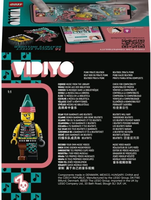 Sada LEGO VIDIYO punk pirate beatbox promění děti v režiséry, producenty i hvězdy vlastních videoklipů. Stačí stáhnout aplikaci, naskenovat pirátskou minifigurku a BeatBity a rázem máte k dispozici rozmanité efekty, výzvy a taneční pohyby. BeatBox lze ozdobit pomocí LEGO dílků – podle předlohy vytvoříte motiv kotvy, truhly s pokladem nebo pirátské lodi, případně si navrhnete vlastní vzhled.