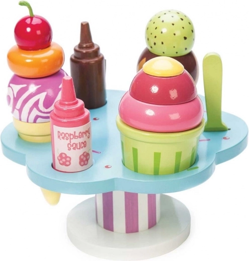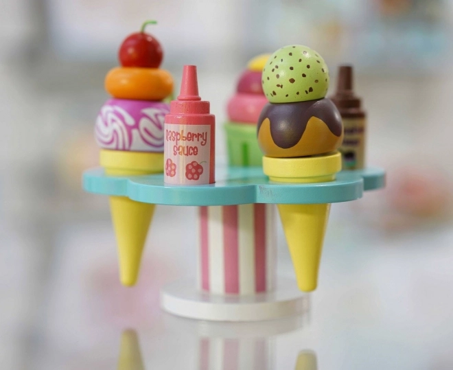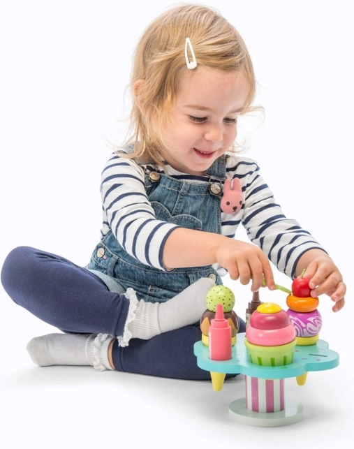Hrací set Le Toy Van Carlo’s Gelato přináší dětem nekonečnou porci zábavy a fantazie. Obsahuje kornoutky i kelímek, odnímatelné kopečky, dvě omáčky a posypky, nechybí ani lžička. Je vyroben z udržitelného FSC dřeva, je ručně domalovaný netoxickými barvami na vodní bázi a podporuje jemnou motoriku, kognitivní dovednosti i hru na role.