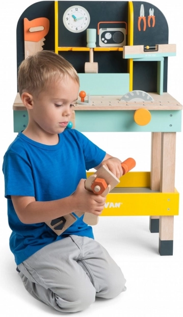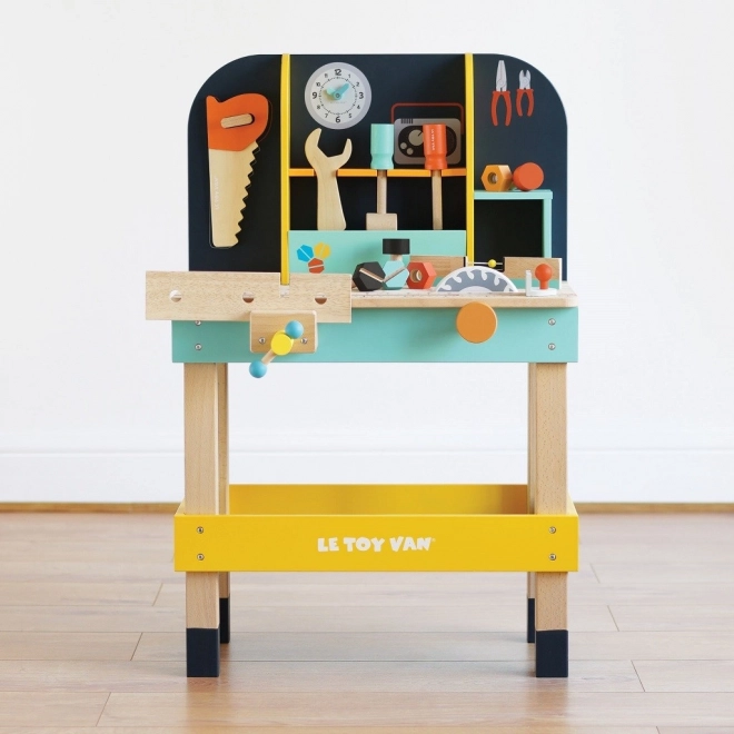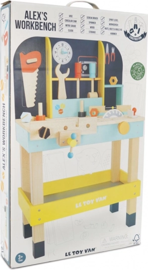 Dětský dřevěný ponk ALEX od LE TOY VAN nabízí vše, co malí opraváři potřebují pro realistickou hru. Díky pevnému zpracování z certifikovaného FSC dřeva a netoxickým barvám je bezpečný, odolný a šetrný k přírodě. Součástí je vestavěná cirkulárka, měrka a svěrák, horní police s háčky a spodní úložný prostor na další vybavení.