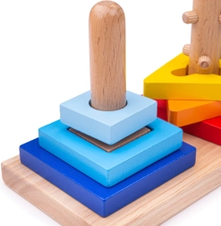 Vkládačka je vyrobena z kvalitního, zodpovědně získaného dřeva a používá nezávadné barvy. Dílky lze řadit od největšího po nejmenší, třídit podle barev a tvarů, nebo kombinovat do vlastních her. Kompaktni rozměry se hodí do dětského pokoje i na cesty.