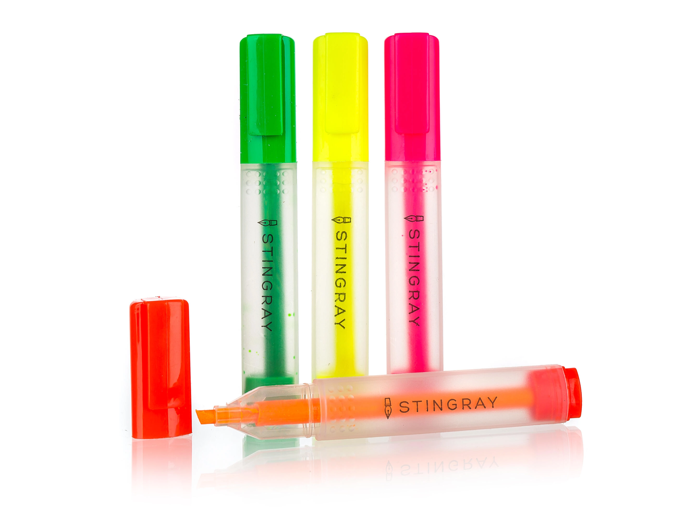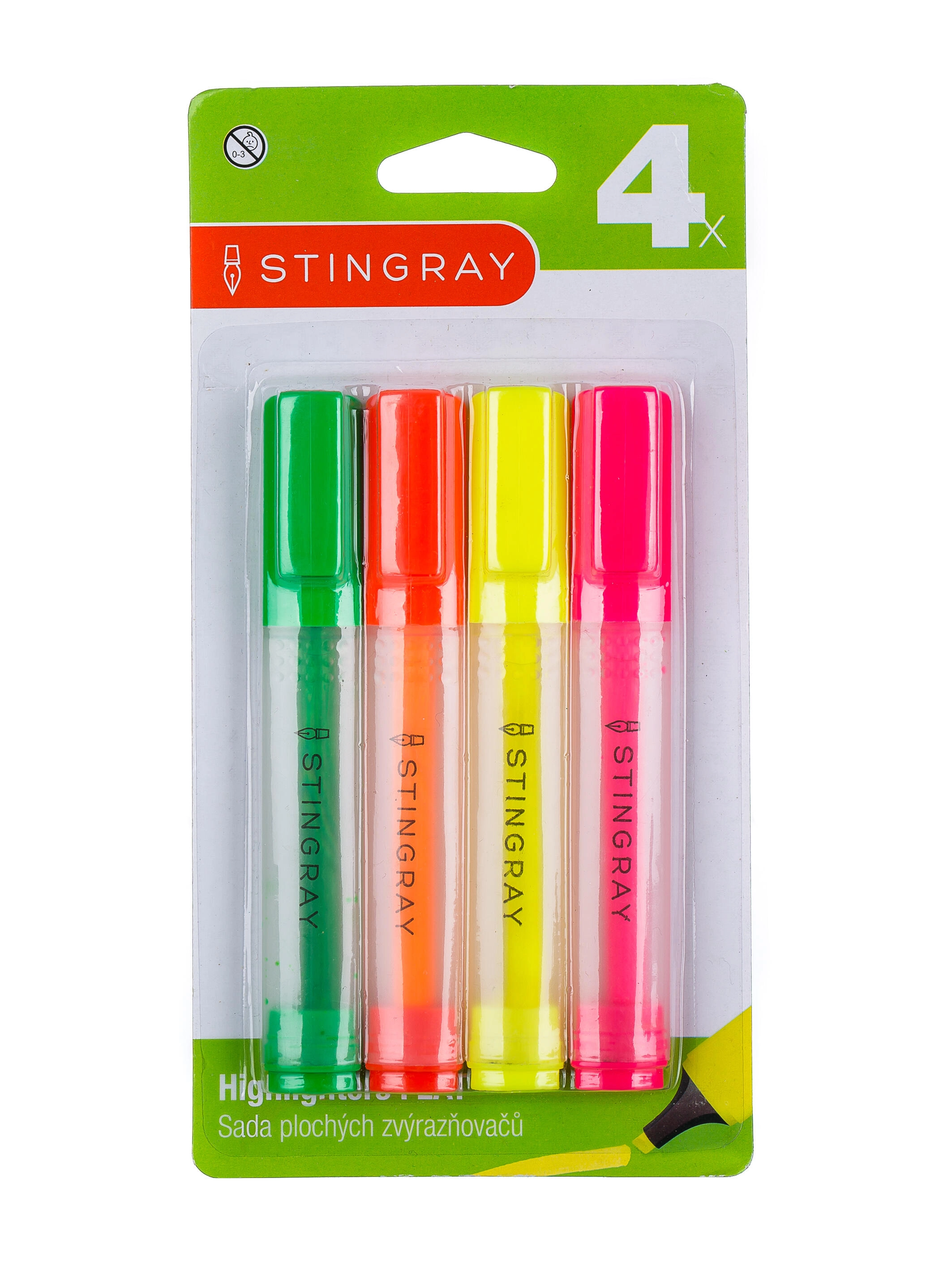 Praktická sada plochých zvýrazňovačů ve čtyřech výrazných barvách pro snadné a přehledné označování textu. Zkosený hrot umožňuje přesné i široké tahy a šířka linky 0,5 cm zajistí viditelné zvýraznění. Ideální do školy i kanceláře.
