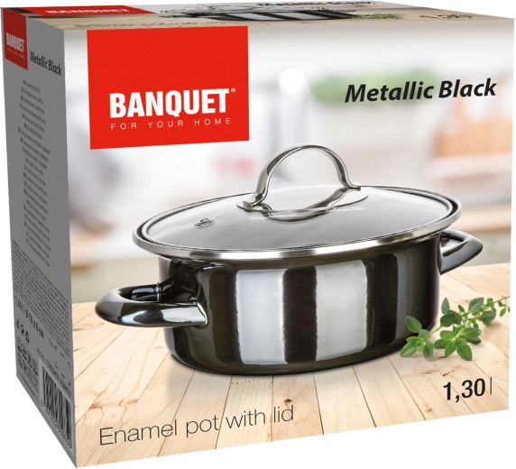 Elegantní smaltovaný hrnec v provedení Metallic Black se skleněnou poklicí je ideální pro každodenní vaření. Nabízí průměr 18 cm, objem 1,3 l a je vhodný na všechny typy varných desek včetně indukce. Odolné provedení, snadná údržba a přehled o vaření díky průhledné poklici.