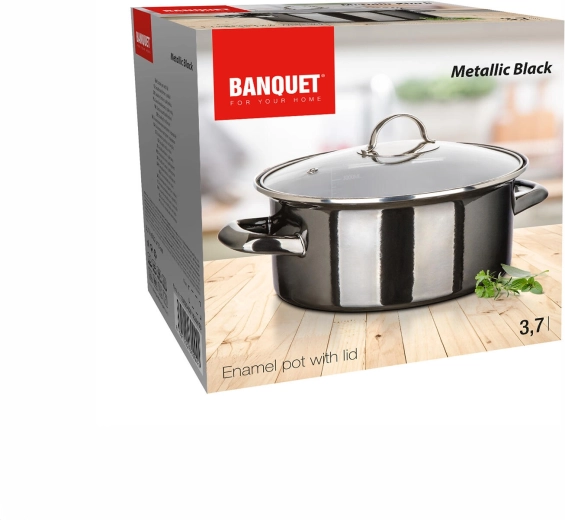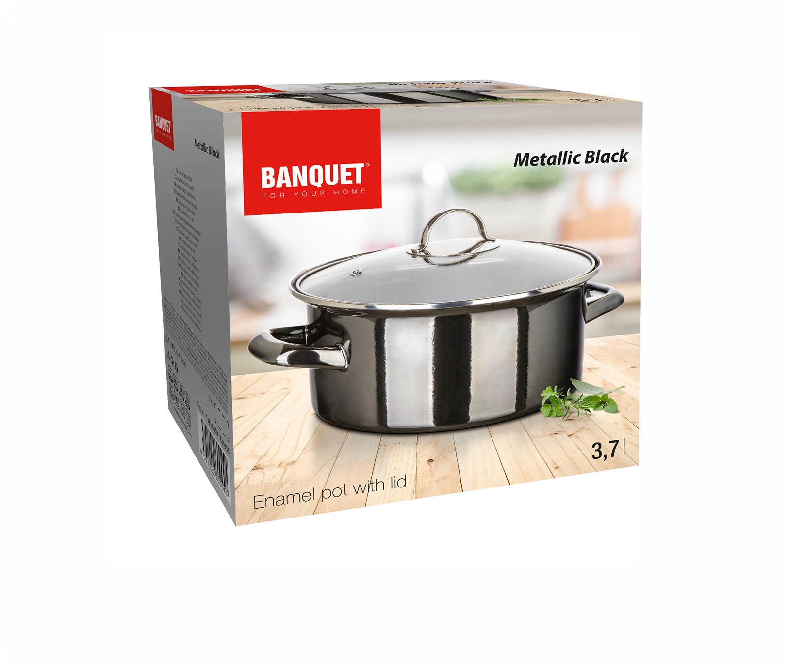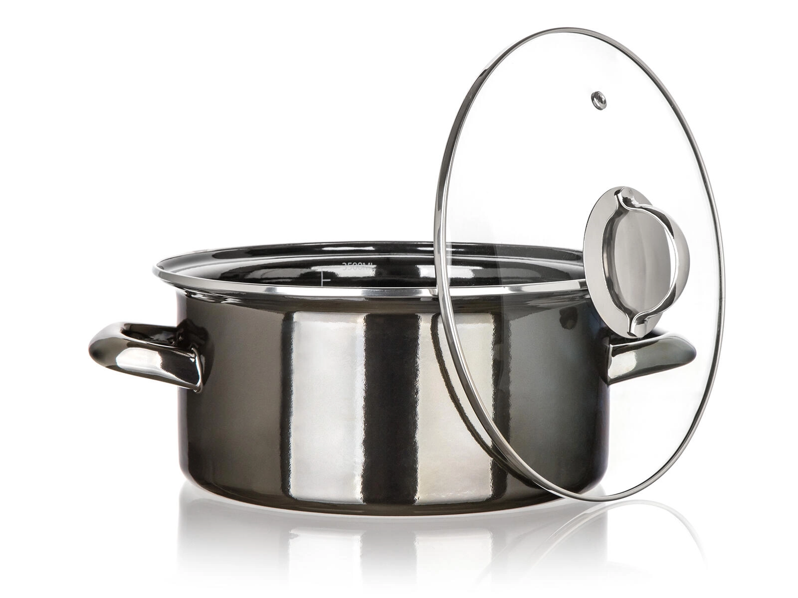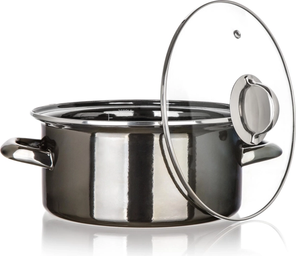 Objevte spolehlivý hrnec pro každodenní použití v moderním designu Metallic Black. Smaltovaný povrch je odolný, snadno se čistí a zajišťuje dlouhou životnost, zatímco skleněná poklice umožňuje pohodlně sledovat průběh vaření bez zbytečného úniku páry.