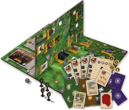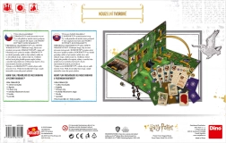 • Obsah balení: 1 otočná hrací deska s dvěma hracími plochami, 4 figurky, 1 arch samolepek, 72 karet se stopami, 4 tabulky Ministerstva kouzel, 1 kostka a pravidla hry.