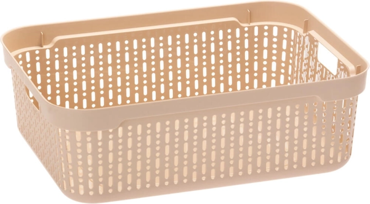 Praktický plastový úložný košík Morsetta o rozměrech 39,3 × 30 × 13 cm je ideální pro přehledné uložení věcí v domácnosti, kanceláři i šatně. Má odolnou perforovanou konstrukci pro větrání a rychlou viditelnost obsahu, integrované rukojeti pro snadné přenášení a snadno omyvatelný povrch. Dostupný v mixu moderních barev pro sladění s interiérem.