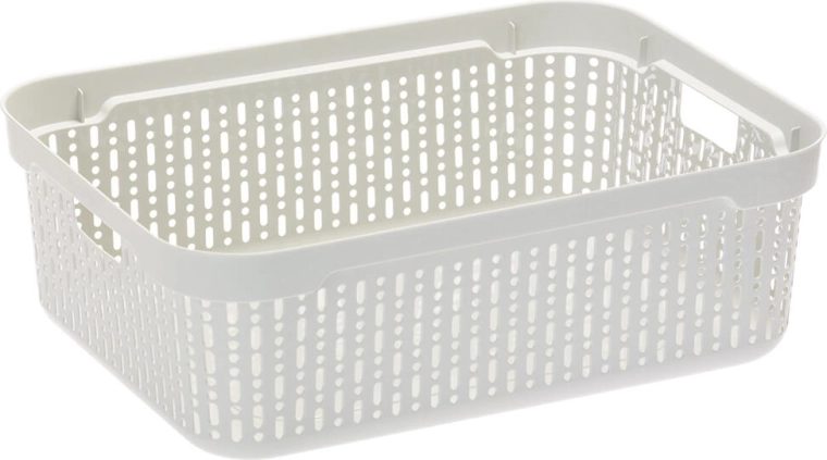 Udržte pořádek stylově. Košík Morsetta z pevného plastu nabízí univerzální využití – od organizace potravin ve spíži, přes hračky v dětském pokoji, až po kosmetiku či kancelářské potřeby. Díky perforovaným stěnám je obsah vždy na očích a dobře větraný.