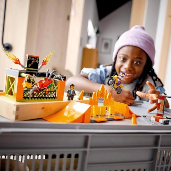 LEGO City Kaskadérský park Stuntz vám umožní roztočit motorku se setrvačníkem a předvádět úžasné kousky. S několika rampami a ohnivými překážkami tato stavebnice nabízí nekonečné možnosti pro imaginativní hru. Můžete kombinovat s jinými sety LEGO City Stuntz a vytvořit si ještě větší kaskadérský park.