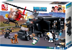 Tato detailní stavebnice SLUBAN z policejní řady SWAT přináší dětem nekonečné možnosti hry i stavění. Hlavní roli hraje robustní mobilní základna – černý kamion se spoustou realistických detailů – doplněná o vrtulník pro letecké zásahy a rychlou policejní motorku pro pronásledování zlodějů. V balení najdete 5 figurek a bohaté příslušenství, které podpoří napínavé příběhy a kreativní scénáře.