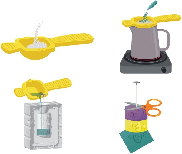 - Snadný postup – jednoduché formování s formičkami a barevným voskem.