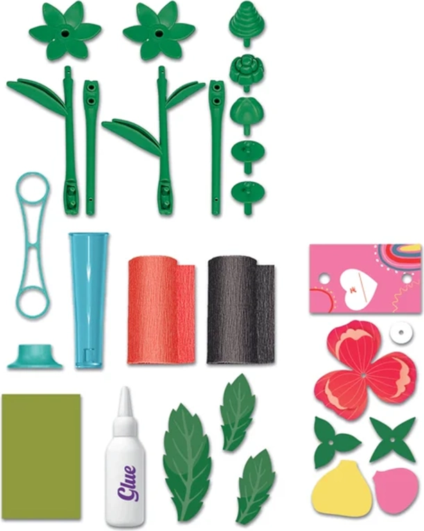 Součástí balení je také kartička s držákem na květinu, kterou lze snadno přizpůsobit a věnovat jako osobní dárek pro rodinu či kamarády. Sada podporuje kreativitu, trpělivost a jemnou motoriku, a zároveň nabízí zábavný způsob, jak děti seznámit s tvary a barvami.